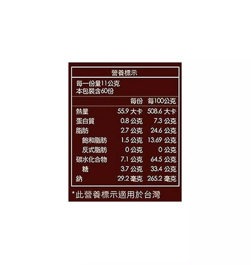 本產品與其他含有奶類、堅果、芝麻、花生、蛋、蕎麥的產品於同一工廠生產,食物過敏者請留意。