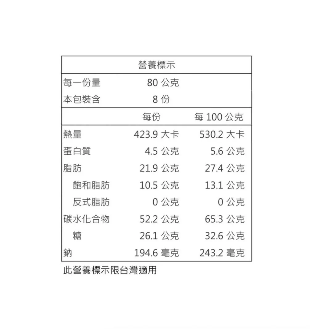 過敏原資訊 : 本產品含麩質之穀物、大豆及牛奶製品,對其過敏體質者不宜食用