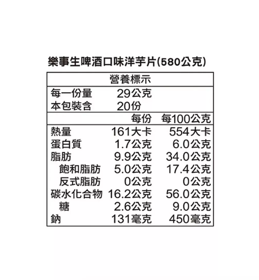 品名 : 樂事 生啤酒口味洋芋片 580公克