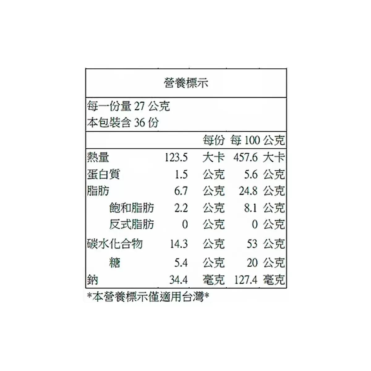 內容量/入數 : 27公克 X 36入